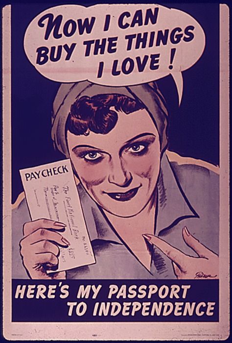 Since you could no longer care for your children and “work” at the same time, families divided responsibilities: fathers worked, mothers stayed home with the kids. A shortage of laborers in an industrialized society during the World Wars meant women were encouraged to join the workforce. Then, eventually, the pill allowed women to avoid pregnancy even when their husbands weren’t away at war, and they could join the outside-the-home workforce full-time. Finally we were liberated! Right?